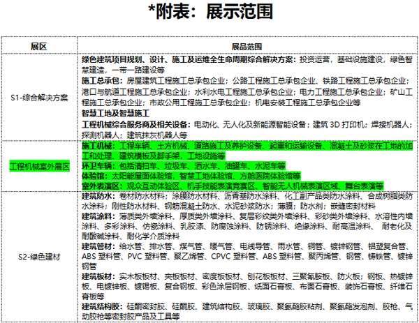 展覽內容:綜合解決方案、工程機械、綠色建材、清潔及可再生能源、現代建筑及綠色裝飾、裝配式建筑、智慧城市及智慧建筑、新基建、城市更新與人居科學、節能裝備、建筑設計等,全方位展示建筑領域從設計、施工、運維到互動體驗的全產業“一站式”行業解決方案、前沿趨勢及最新成果。