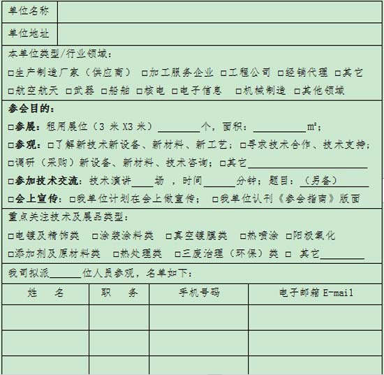 2024 成渝軍民兩用裝備表面處理技術創新大會 · 參會回執表