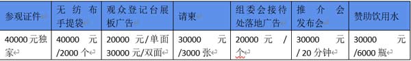 ●品牌展位:國內企業:(長×寬×高:6m×3m×4.5m)¥30,000 / 18㎡;國際企業:¥,40,000/18㎡(含鋼制桁架搭建、噴繪制作、地毯、洽談桌椅及照明等)