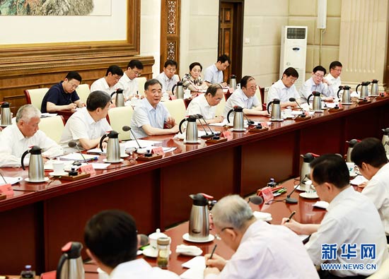 6月10日,中共中央政治局常委、全國政協主席汪洋在北京與有關民主黨派中央、全國工商聯負責人和無黨派人士代表座談,就相關黨派團體開展的“創新驅動引領高質量發展”調研成果進行協商。 新華社記者 黃敬文 攝