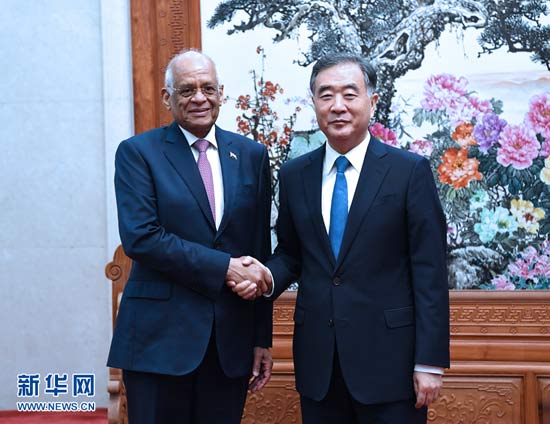 6月18日,全國政協(xié)主席汪洋在北京人民大會堂會見埃及議長阿里。 新華社記者 饒愛民 攝