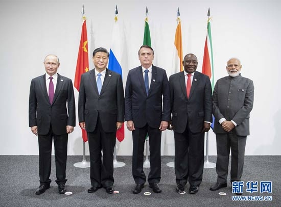6月28日,金磚國家領導人會晤在大阪舉行。國家主席習近平、巴西總統博索納羅、俄羅斯總統普京、印度總理莫迪、南非總統拉馬福薩出席。 新華社記者 李濤 攝