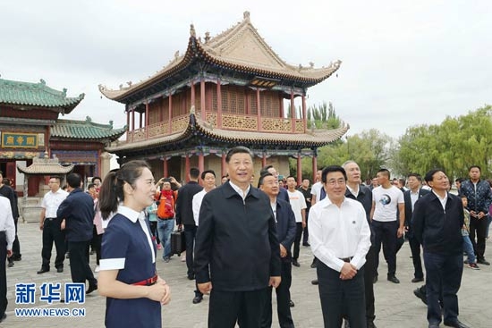 8月20日上午,中共中央總書記、國家主席、中央軍委主席習(xí)近平來到嘉峪關(guān)關(guān)城,登上城樓察看關(guān)城整體面貌,聽取河西走廊長城、關(guān)隘歷史文化情況介紹。 新華社記者 鞠鵬 攝