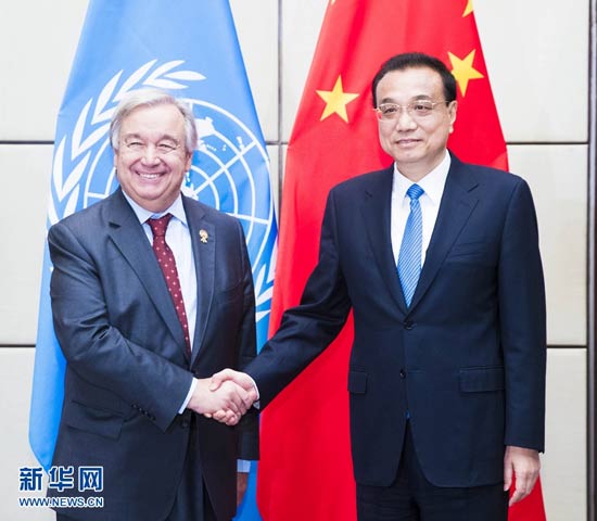 李克強(qiáng)會(huì)見(jiàn)聯(lián)合國(guó)秘書長(zhǎng)古特雷斯
