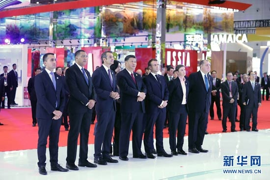 習近平同出席第二屆中國國際進口博覽會的外國領導人共同巡館