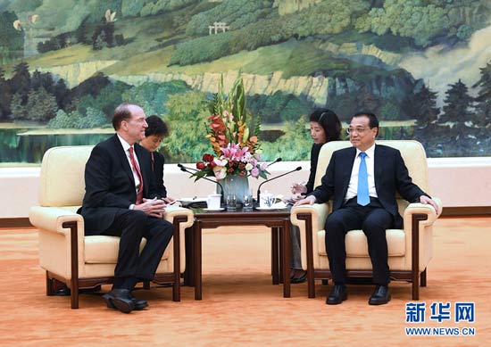 11月20日,國務院總理李克強在北京人民大會堂會見世界銀行行長馬爾帕斯。 新華社記者 饒愛民 攝
