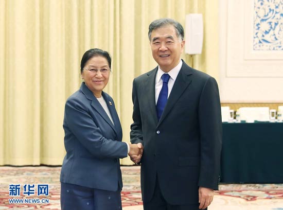 12月18日,全國政協主席汪洋在北京人民大會堂會見老撾國會主席巴妮。 新華社記者 姚大偉 攝