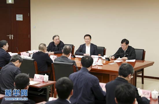1月9日,中共中央政治局常委、國務院副總理韓正在國家醫療保障局召開座談會。 新華社記者 丁海濤 攝