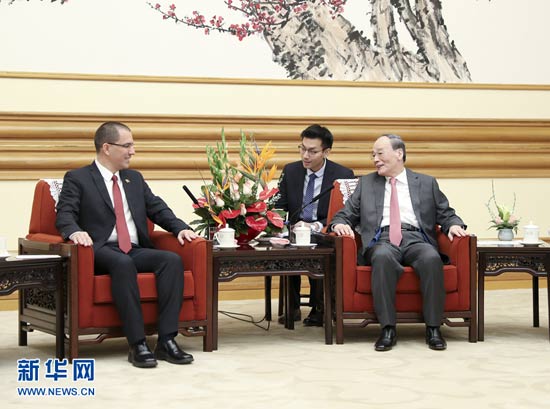 王岐山會見委內(nèi)瑞拉外長阿雷亞薩