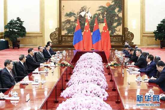 習(xí)近平同蒙古國(guó)總統(tǒng)巴特圖勒嘎會(huì)談
