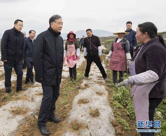 近日,中共中央政治局常委、全國政協主席汪洋在云南、貴州調研脫貧攻堅工作。這是4月25日,汪洋在貴州畢節市納雍縣寨樂鎮辣椒種植基地與在田間勞作的農戶交流,了解產業帶動、農技培訓、增收脫貧等情況。 新華社記者 王曄 攝