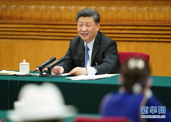5月22日,中共中央總書記、國家主席、中央軍委主席習近平參加十三屆全國人大三次會議內蒙古代表團的審議。 新華社記者 黃敬文 攝
