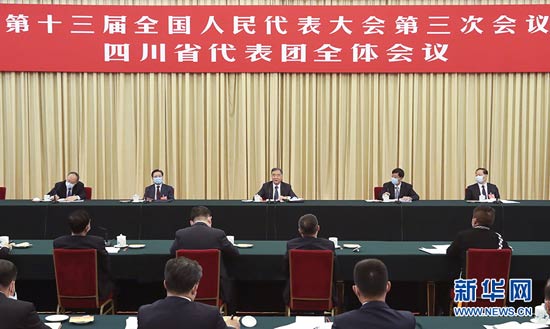 5月22日,中共中央政治局常委、全國政協主席汪洋參加十三屆全國人大三次會議四川代表團的審議。 新華社記者 姚大偉 攝