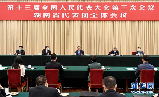 5月24日,國家副主席王岐山參加十三屆全國人大三次會議湖南代表團的審議。 新華社記者 岳月偉 攝