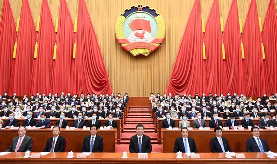 5月27日,中國人民政治協商會議第十三屆全國委員會第三次會議在北京閉幕。這是習近平、李克強、栗戰書、王滬寧、趙樂際、韓正、王岐山等在主席臺就座。 新華社記者 謝環馳 攝