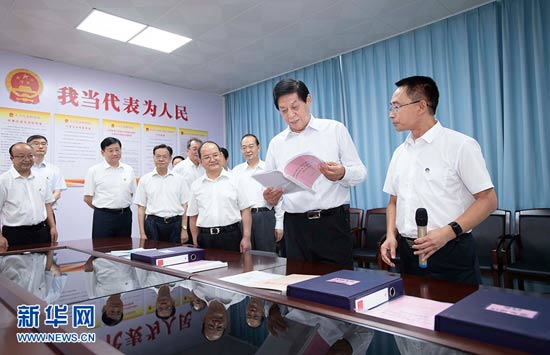 7月12日至15日,中共中央政治局常委、全國人大常委會委員長栗戰書率全國人大常委會執法檢查組在廣西檢查野生動物保護法和全國人大常委會關于全面禁止非法野生動物交易、革除濫食野生動物陋習、切實保障人民群眾生命健康安全的決定的實施情況。這是7月12日,栗戰書在南寧市青秀區新竹社區調研人大代表聯絡站和基層立法聯系點建設情況。 新華社記者 李濤 攝