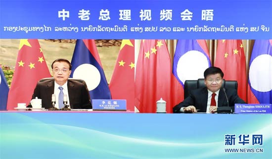 7月21日,國務院總理李克強在北京人民大會堂應約同老撾總理通倫舉行視頻會晤。 新華社記者 龐興雷 攝