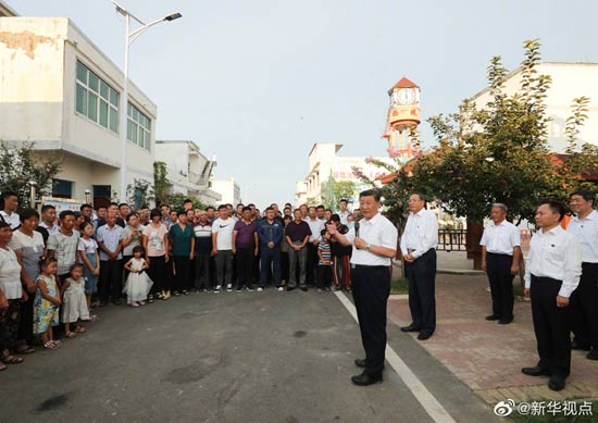 習近平總書記18日赴安徽考察調研。當天下午,他先后來到阜陽市阜南縣王家壩閘、紅亮箱包有限公司、蒙洼蓄洪區曹集鎮利民村西田坡莊臺,察看淮河水情,走進田間地頭,了解當地防汛救災和災后恢復生產等情況,看望慰問受災群眾。