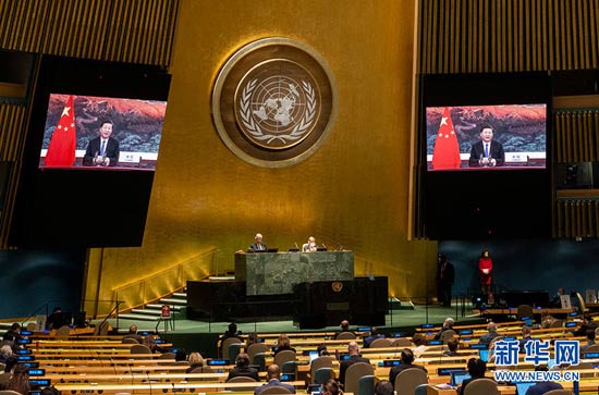 10月1日,國家主席習近平在聯合國大會紀念北京世界婦女大會25周年高級別會議上通過視頻發表重要講話。 新華社發