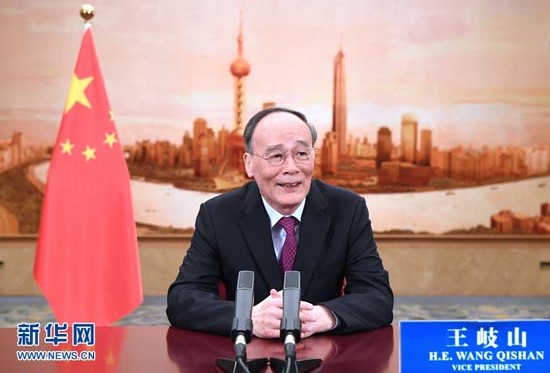 10月24日,第二屆外灘金融峰會(huì)在上海開(kāi)幕,國(guó)家副主席王岐山在開(kāi)幕式上發(fā)表視頻致辭。 新華社記者 饒愛(ài)民 攝