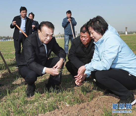 11月3日至4日,中共中央政治局常委、國務院總理李克強在河南安陽、鄭州考察。這是11月3日,李克強在安陽東路村冬小麥田察看土壤墑情,與農民和農技人員交流。 新華社記者 龐興雷 攝