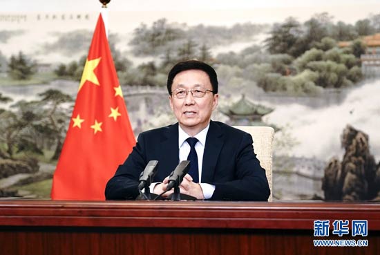 11月10日,博鰲亞洲論壇國際科技與創新論壇首屆大會開幕式在澳門舉行。中共中央政治局常委、國務院副總理韓正以視頻方式發表主旨演講。 新華社記者 丁林 攝