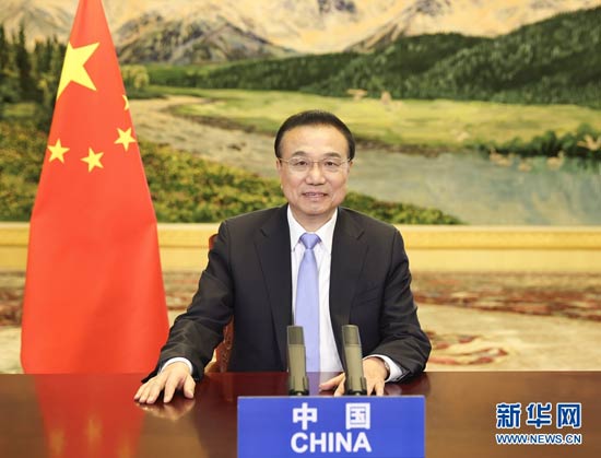 12月14日,國務院總理李克強在《經濟合作與發展組織公約》簽署60周年紀念活動上發表視頻致辭。 新華社記者 龐興雷 攝