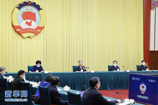 1月21日,十三屆全國政協第46次雙周協商座談會在北京召開。中共中央政治局常委、全國政協主席汪洋主持會議。 新華社記者 劉彬 攝