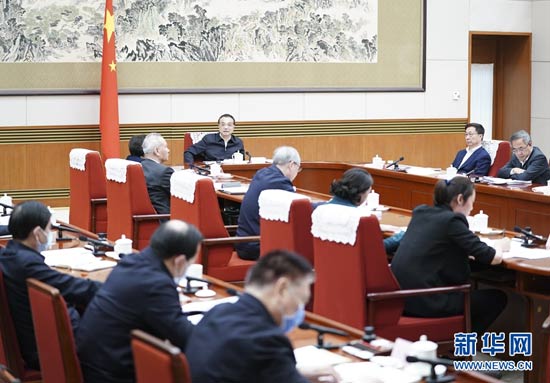 1月25日,中共中央政治局常委、國務院總理李克強在北京主持召開座談會,聽取教育、科技、文化、衛生、體育界人士和基層群眾代表對《政府工作報告》、《“十四五”規劃和二〇三五年遠景目標綱要(草案)》兩個征求意見稿的意見建議。中共中央政治局常委、國務院副總理韓正出席。 新華社記者 燕雁 攝