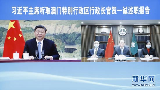 1月27日,國家主席習近平在北京以視頻連線方式聽取了澳門特別行政區(qū)行政長官賀一誠2020年度的述職報告。新華社記者 劉彬 攝
