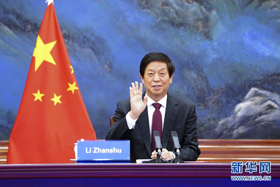 5月25日,全國人大常委會委員長栗戰書在北京人民大會堂以視頻方式同古巴全國人民政權代表大會主席拉索舉行會談。新華社記者 燕雁 攝