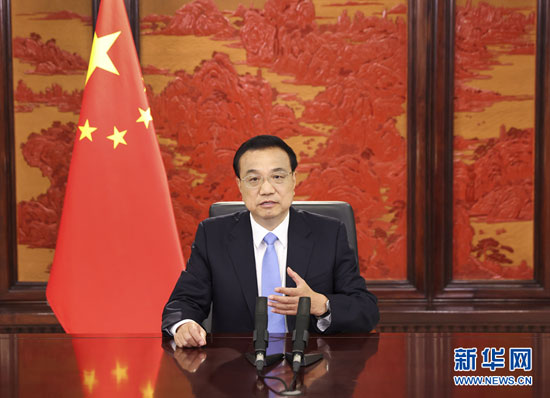 5月30日,國務(wù)院總理李克強(qiáng)在北京以視頻形式出席第二屆全球綠色目標(biāo)伙伴2030峰會并致辭。 新華社記者 龐興雷 攝