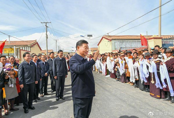 6月8日下午,習近平總書記在青海省剛察縣沙柳河鎮果洛藏貢麻村口,對熱情涌來的村民們說,我們都是一家人,我們都是兄弟姐妹。這個村子變化很大,看到大家過得很幸福,我們很欣慰,能感受到大家對黨和政府的深情厚誼。