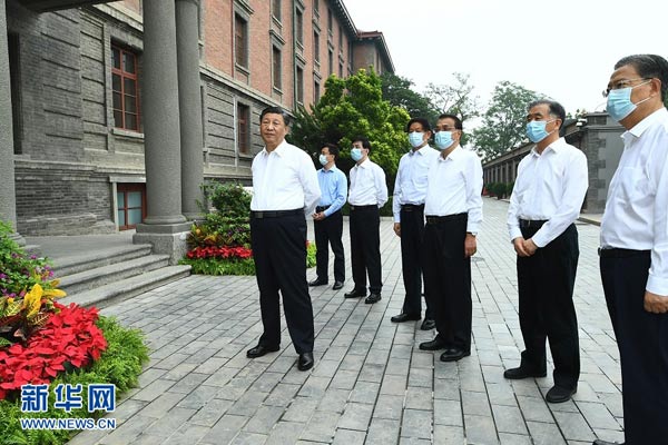 6月25日,中共中央政治局就用好紅色資源、賡續紅色血脈舉行第三十一次集體學習。這次集體學習采取參觀和討論相結合的形式,這是習近平、李克強、栗戰書、汪洋、王滬寧、趙樂際、韓正等在北大紅樓參觀“光輝偉業 紅色序章——北大紅樓與中國共產黨早期北京革命活動主題展”。 新華社記者 謝環馳 攝