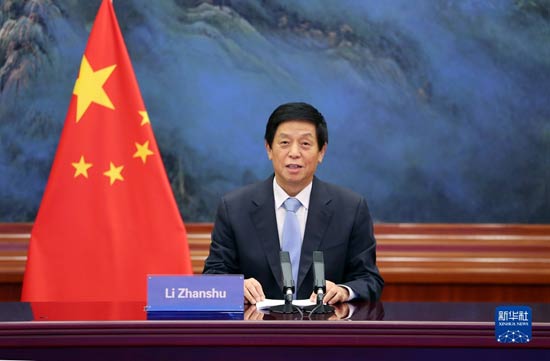 8月31日,全國人大常委會委員長栗戰(zhàn)書在北京人民大會堂以視頻方式同斯里蘭卡議長阿貝瓦德納舉行會談。新華社記者 姚大偉 攝