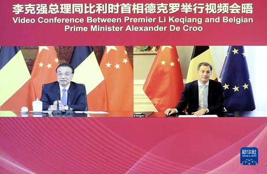 12月7日下午,國務院總理李克強在北京中南海紫光閣同比利時首相德克羅舉行視頻會晤。新華社記者 劉衛兵 攝