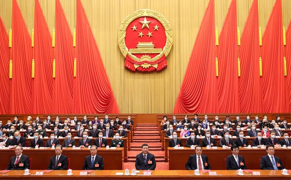 3月11日,第十三屆全國人民代表大會第五次會議在北京人民大會堂閉幕。黨和國家領(lǐng)導人習近平、李克強、汪洋、王滬寧、趙樂際、韓正、王岐山等在主席臺就座,栗戰(zhàn)書主持閉幕會并發(fā)表講話。