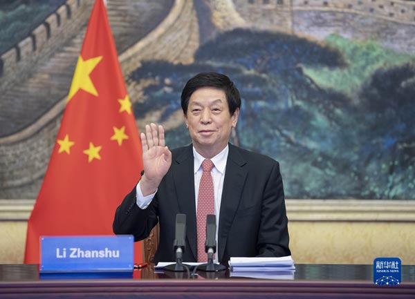 4月19日,全國人大常委會委員長栗戰書在北京人民大會堂以視頻方式同墨西哥參議長桑切斯舉行會談。