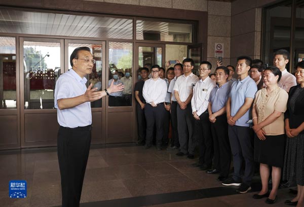 6月27日,中共中央政治局常委、國務院總理李克強到民政部、人力資源社會保障部考察,并主持召開座談會。這是李克強在民政部考察時與工作人員交談。