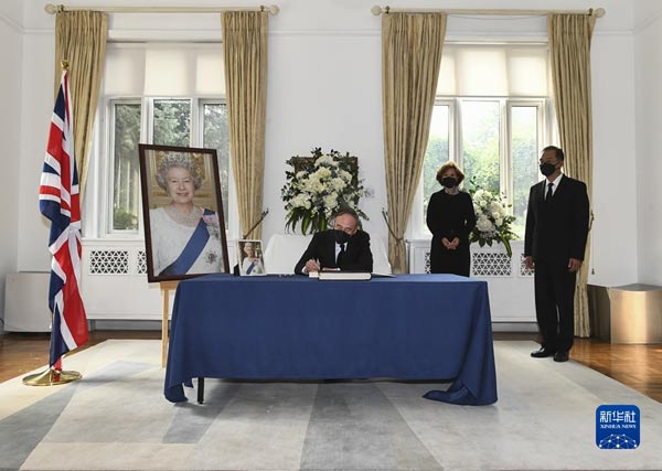 9月12日,國家副主席王岐山前往英國駐華使館,吊唁英國女王伊麗莎白二世逝世。 新華社記者 謝環馳 攝
