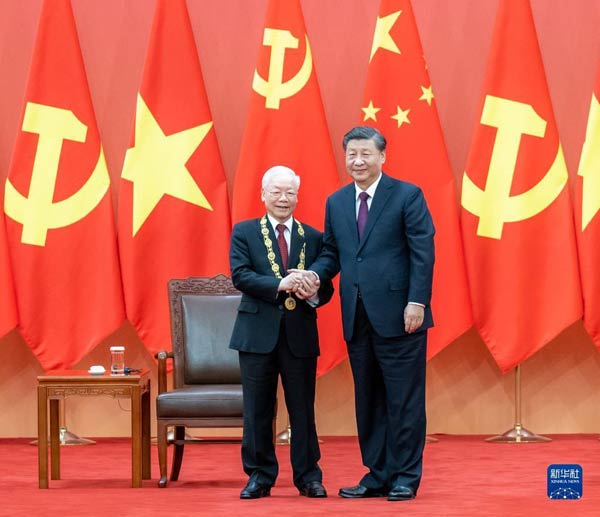 習(xí)近平向越共中央總書(shū)記阮富仲授予“友誼勛章”并舉行隆重頒授儀式