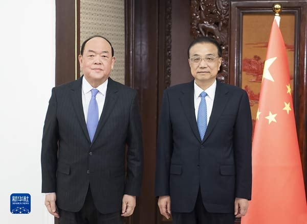 12月22日,國務院總理李克強在中南海紫光閣會見來京述職的澳門特別行政區行政長官賀一誠。