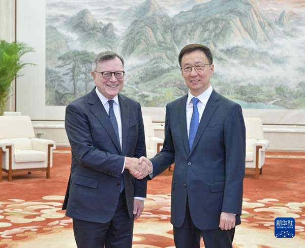 7月14日,國家副主席韓正在北京會見英國渣打集團主席韋浩思。新華社記者 高潔 攝