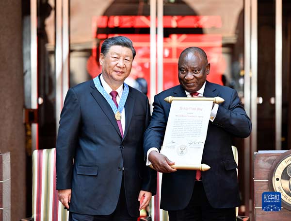 當地時間8月22日上午,正在南非進行國事訪問的國家主席習近平在比勒陀利亞總統府同南非總統拉馬福薩會談。會談后,拉馬福薩向習近平授予“南非勛章”,這是南非授予重要友好國家元首的最高級別勛章和最高榮譽。