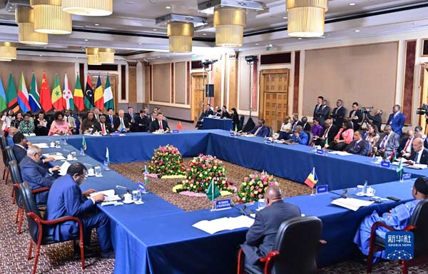 非盟輪值主席、科摩羅總統(tǒng)阿扎利,中非合作論壇非方共同主席國(guó)、塞內(nèi)加爾總統(tǒng)薩勒,非洲次區(qū)域組織代表贊比亞總統(tǒng)希奇萊馬、布隆迪總統(tǒng)恩達(dá)伊施米耶、吉布提總統(tǒng)蓋萊、剛果(布)總統(tǒng)薩蘇、納米比亞總統(tǒng)根哥布、乍得總理凱布扎博、利比亞總統(tǒng)委員會(huì)副主席庫(kù)尼、尼日利亞副總統(tǒng)謝蒂馬,以及非盟委員會(huì)代表穆昌加等出席。