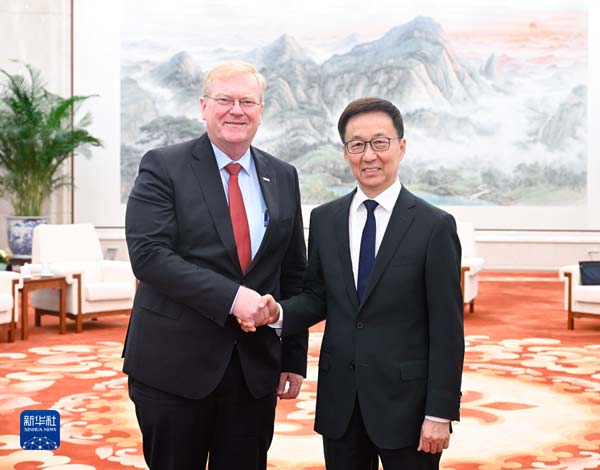 11月3日,國家副主席韓正在北京會見德國博世集團董事會主席斯特凡·哈通。