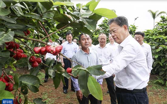 3月29日至30日,中共中央政治局常委、全國人大常委會委員長趙樂際在海南調研。這是3月29日,趙樂際在定安縣黃竹鎮(zhèn)白塘村,察看蓮霧果園種植情況。