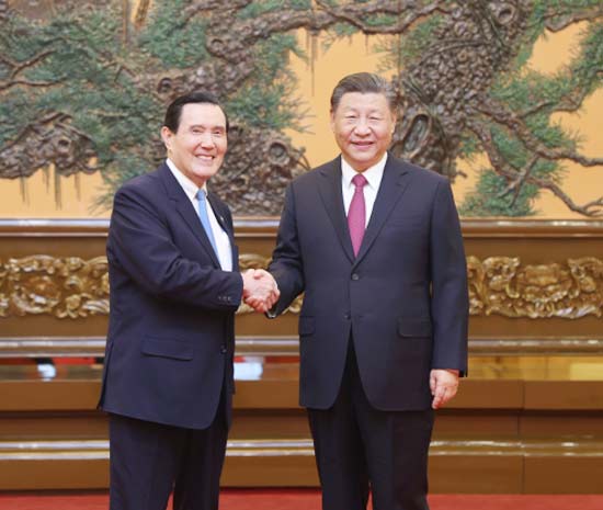 4月10日下午,中共中央總書記習近平在北京會見馬英九一行。新華社記者 鞠鵬攝