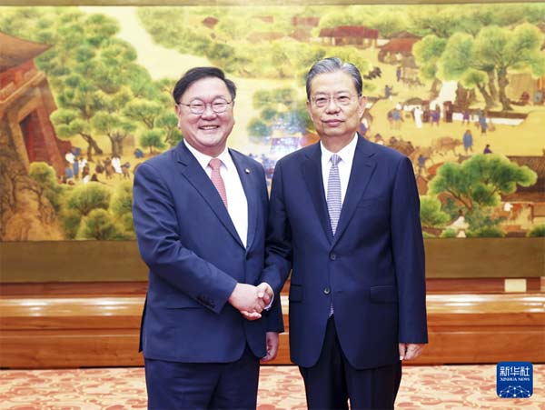 9月19日,全國人大常委會委員長趙樂際在北京會見韓國國會韓中議員聯盟會長金太年一行。