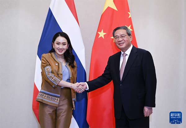 當地時間10月10日,國務院總理李強在萬象出席東亞合作領導人系列會議期間會見泰國總理佩通坦。